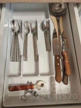 В квартире две комнаты, предусмотрено размещение до шести человек. В наличии две кровати и раскладной диван, комплект постельного белья и полотенец. Установлены кондиционер, два телевизора, Wi-Fi, стиральная машина, утюг и фен. Кухня оснащена плитой, микроволновой печью, чайником и посудой. В распоряжении гостей гель для душа, шампунь и одноразовые зубные щётки. В доме имеется лифт, квартира расположена на восьмом этаже.