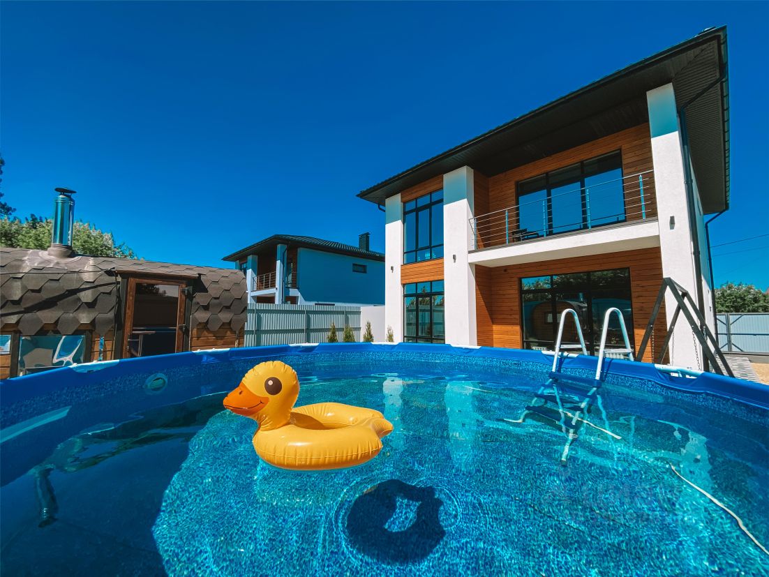 - Бассейн глубиной 1,5м и диаметром 3м