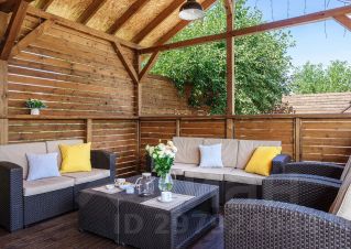 Крытая веранда с плетеной мебелью