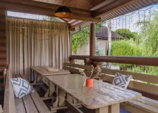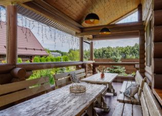 Крытая уличная веранда со столовой группой