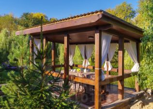 ?Крытая мебелированная беседка у воды на 15 чел.