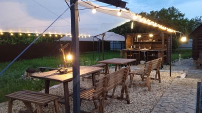 Столовая под шатром вмещает до 10 человек. Площадь - 25 м2