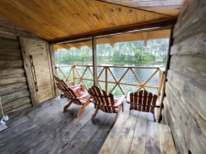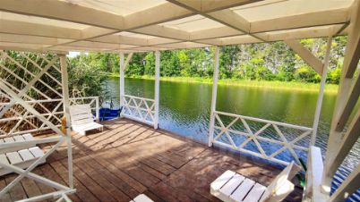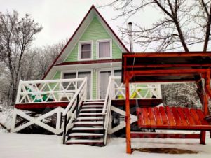 Домик в стиле a-frame у чистейшей реки Битюг.Все удобства,терраса,Окна переднего фасада смотрят на реку, окна заднего фасада смотрят на лес.Лес примыкает к домику.В доме три спальных пространства. Кухня,печка-камин на дровах, как дополнение к электрическому отоплению. Большая уличная беседка с двумя каменными мангалами, беседка-пирс на реке. Видовая беседка на горе, с видом на реку и луг. Лодка весельная, каяки напрокат для походов по красивым местам Битюга.Имеется отдельная баня на дровах в непосредственной близости к реке.Живописная дорога вдоль реки для пеших прогулок. Зимой есть где покататься на ледянках, лыжах. Тихий семейный отдых.До реки 70м.Нет никаких трудностей с дорогой до места.