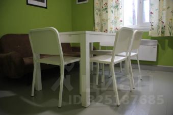 В гостиной кухне столовой: стол-тумба кухонный, навесные шкафы, двух-конфорочная плита, мойка, телевизор с DVD , холодильник, СВЧ-печь, электро-чайник, полный набор посуды для сервировки стола и для приготовления пищи, стол на 6 персон, стулья, диван.