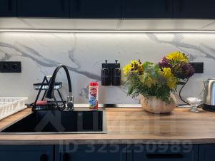 просторная гостиная-кухня (33 м²) с панорамными окнами, диваном и всей техникой для кулинарных подвигов! Большой холодильник, варочная панель, посудомоечная машина, микроволновка и вся необходимая посуда!