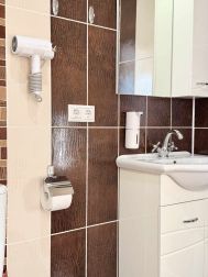 - Два сан узла: один на втором этаже, в котором ванная, умывальник, унитаз и биде. Второй на первом этаже, в котором: душевая кабина, умывальник, унитаз, биде ,премиальная стиральная и сушильная машины Bosch в два этажа.