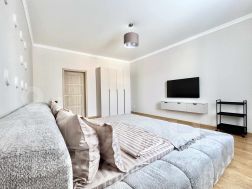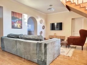 - Просторный хол первого этажа с двуспальным диваном, большим смарт ТВ, системой хранения под лестницей для Ваших вещей.