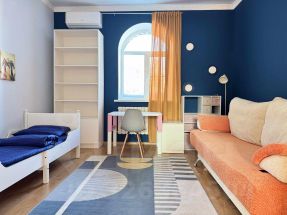 Спальня два, детская, с односпальной кроватью Икеа, которая регулируется по размеру ребенка и двухспальным диваном, итого 3 спальных места, есть письменный стол со стулом, кондиционер, ТВ и различные системы хранения.