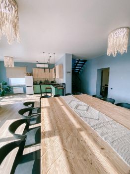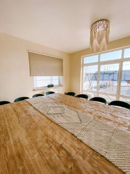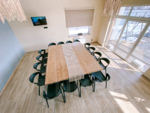 - 2 cтoлa, каждый размером 2,5м на 1м; 16 cтульeв+