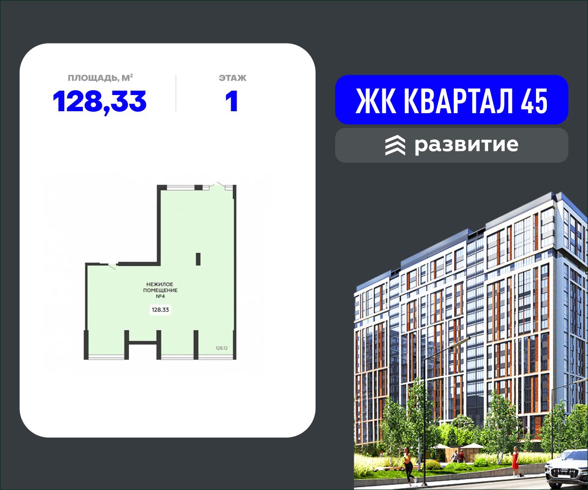 Предлагается к продаже помещение свободного назначения в Жилом Комплексе "Квартал 45" в развитом Коминтерновском районе около Центрального автовокзала. Данный вариант отлично подходит под любой вид коммерческой деятельности таких как: фитнес-студия, спортивные секции, салоны красоты, пункты выдачи, магазины формата "у дома", продовольственные магазины, кофейни и тд. В помещении есть отдельный вход и санузел. Выполнена черновая отделка, заведено электричество, подведена вода и канализация. Возможность размещения информационных вывесок на фасаде здания для привлечения внимания со стороны пешеходов. Преимущества месторасположения: • ЖК Квартал 45 рассчитан на 11500 жителей, имеется подземный и наземный паркинг на закрытой территории комплекса; • ЖК расположен находится в развитом Коминтерновском районе, где есть всё для жизни и отдыха. Рядом с жилым кварталом находятся детские сады, вузы и школы.; • Неподалеку расположен Центральный автовокзал, фитнес-клубы "Янтарный", Железный мир, X fit, бассейн ВГУ и многое другое; • Удачная локация в нескольких минутах от насыщенной городской жизни, а благодаря развитой сети маршрутов общественного транспорта вы сможете беспрепятственно добраться в любую часть города. Отличный вариант для Вашего бизнеса! Возможно, вы искали: Коммерческая недвижимость в Воронеже, Коммерческая недвижимость у автовокзала в Воронеже, Коммерческое помещение в жилом комплексе, Коммерция ЖК Квартал 45, Купить коммерческую недвижимость в Воронеже, Купить коммерческую недвижимость ЖК Квартал 45, Нежилое помещение ЖК Квартал 45, Купить нежилое помещение ЖК Квартал 45, Площади для инвестиций в Воронеже, Стоимость коммерции в Воронеже, Стоимость коммерции в ЖК Квартал 45, Коммерческая недвижимость в Воронеже на 1 этаже, Продажа нежилого помещения в Воронеже, Продажа торгового помещения в Воронеже, Офис в Воронеже, Нежилые помещения в Воронеже, Коммерция в Воронеже, Торговые площади в Воронеже, Стоимость нежилого помещения в Воронеже.