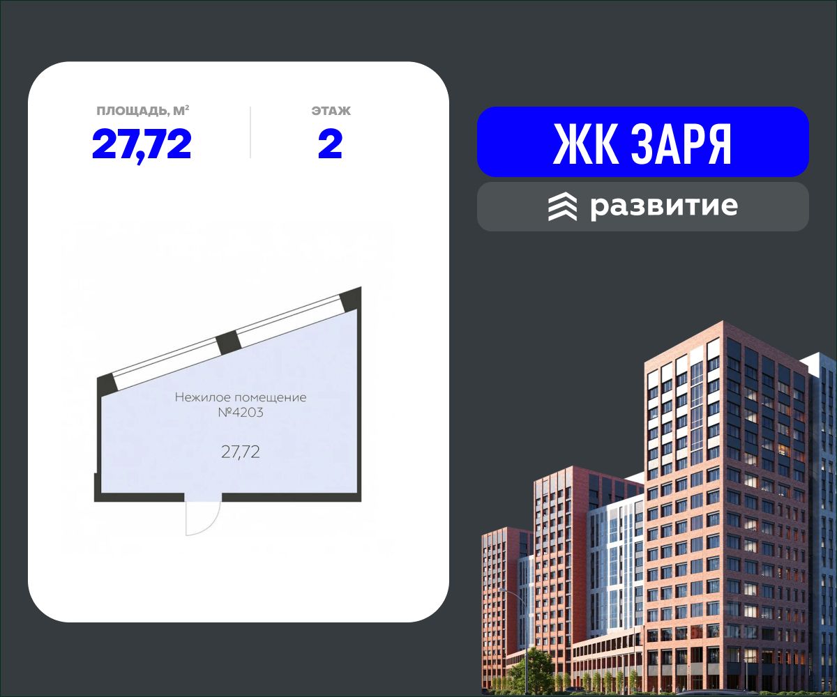 Предлагается к продаже помещение свободного назначения в Жилом Комплексе "Заря" в самом сердце левого берега и в непосредственной близости к историческому центру. Данный вариант отлично подходит для любого вида коммерческой деятельности, такого как: фитнес-студия, спортивная секция, салон красоты, пункт выдачи, магазин формата "у дома", продовольственный магазин, кофейня, офисное помещение и тд. В помещении есть санузел. Выполнена черновая отделка, заведено электричество, подведена вода и канализация. Возможность размещения информационных вывесок на фасаде здания для привлечения внимания со стороны пешеходов. Преимущества месторасположения: • Жилой комплекс рассчитан на 1500 жителей, имеется подземный и наземный паркинг на закрытой территории; • В 15 минутах ходьбы от дома расположены: Чернавская дамба, парк "Алые паруса" и парк "Патриотов"; • Удобные заезды на ключевые магистрали: улицы Ленинградская и Брусилова, Ленинский проспект обеспечивают превосходную транспортную доступность; • В трех минутах ходьбы остановка общественного транспорта. Более 19 маршрутов общественного транспорта позволят без суеты добраться в любую точку города; • В районе уже сформирована инфраструктура: торговые центры, продуктовые магазины, аптеки, кафе, поликлиники, детские центры и другие повседневные сервисы. Отличный вариант для Вашего бизнеса!