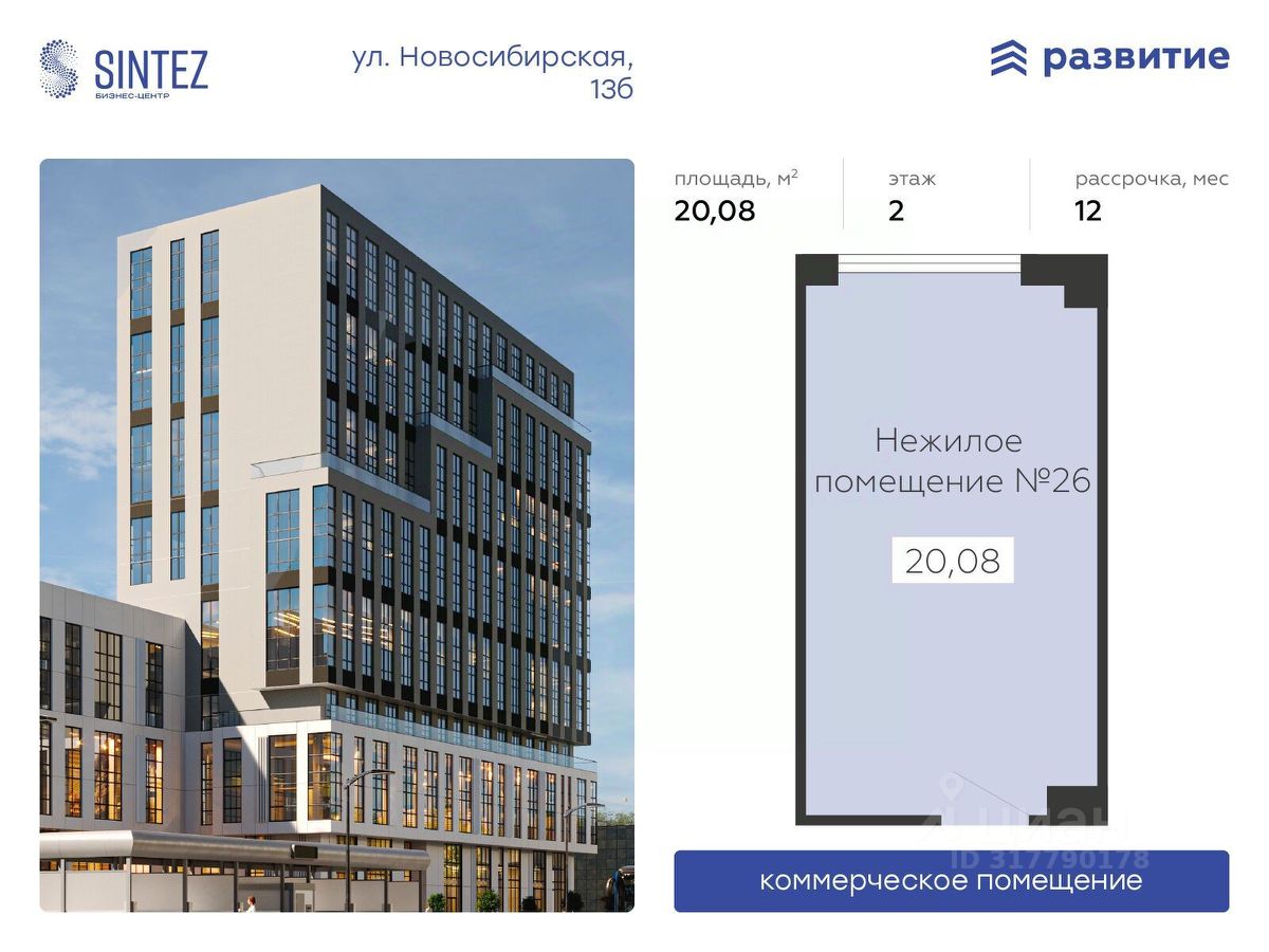 В продаже помещение коммерческого назначения площадью 20.08 кв. м . Офис находится на 2 этаже 14-этажного бизнес-центра SINTEZ, расположенного в Левобережном районе города Воронеж, на ул. Новосибирской, 13Б.