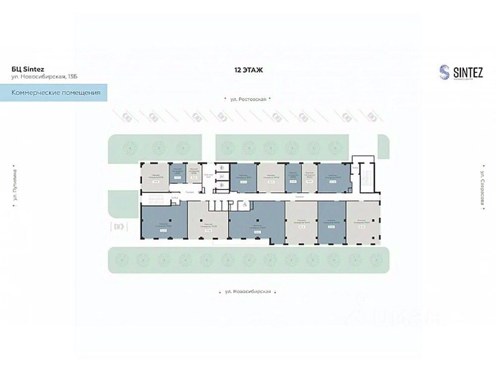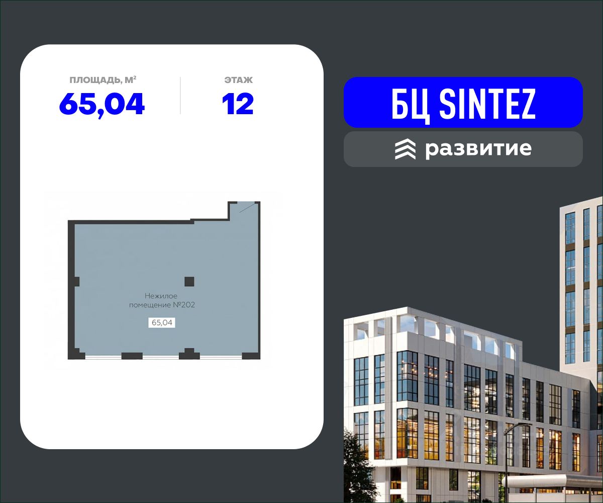 В продаже помещение коммерческого назначения площадью 65.04 кв. м . Офис находится на 12 этаже 14-этажного бизнес-центра SINTEZ, расположенного в Левобережном районе города Воронеж, на ул. Новосибирской, 13Б.