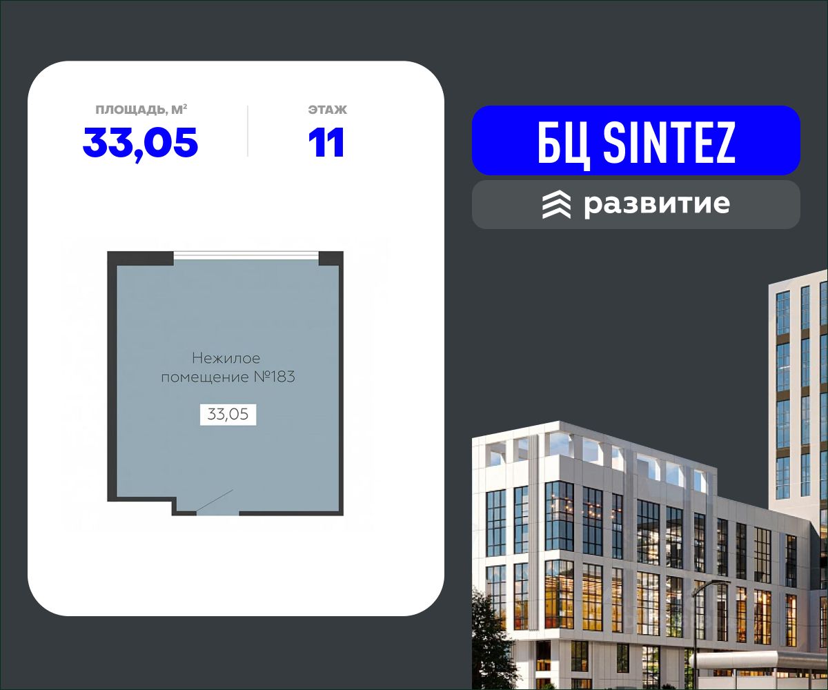 В продаже помещение коммерческого назначения площадью 33.05 кв. м . Офис находится на 11 этаже 14-этажного бизнес-центра SINTEZ, расположенного в Левобережном районе города Воронеж, на ул. Новосибирской, 13Б.
