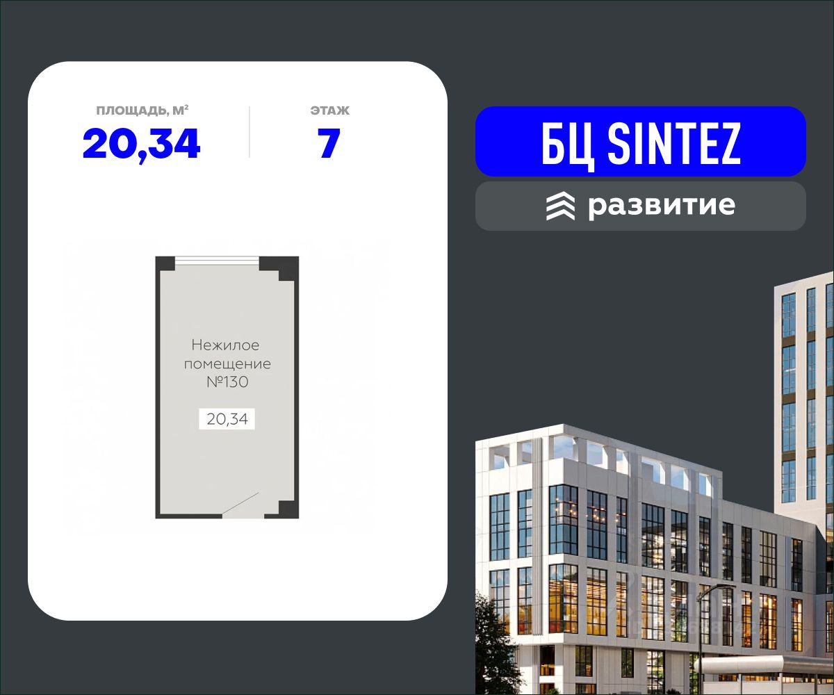 Бизнес-центр SINTEZ это новая архитектурная доминанта города, которая задает тон всей локации и становится интересным визуальным акцентом окружающей территории. Современное здание от ГК "Развитие" объединяет в себе офисы с гибкими планировками от 12 до 1200 кв. м, современные технологии, комплексную инфраструктуру и другие удобства, необходимые для комфортной работы любого коллектива.