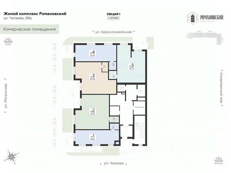 Предлагается к продаже помещение свободного назначения в Жилом Комплексе "Романовский" в самом сердце Ленинского района. Данный вариант отлично подходит для любого вида коммерческой деятельности, такого как: фитнес-студия, спортивная секция, салон красоты, пункт выдачи, магазин формата "у дома", продовольственный магазин, кофейня, и тд. В помещении есть отдельный вход и санузел. Выполнена черновая отделка, заведено электричество, подведена вода и канализация. Возможность размещения информационных вывесок на фасаде здания для привлечения внимания со стороны пешеходов. Преимущества месторасположения: • Романовский рассчитан на 700 жителей, имеется подземный и наземный паркинг на закрытой территории; • В 15 минутах ходьбы от дома расположены: стадион "Чайка", креативный кластер "Станция" и Военно-воздушная академия имени профессора Н. Е. Жуковского и Ю. А. Гагарина; • Удобные заезды на ключевые магистрали: улицы Чапаева и Краснознаменная, Казарменный переулок обеспечивают превосходную транспортную доступность; • В радиусе 750 метров расположены три остановки общественного транспорта. Более 11 маршрутов общественного транспорта позволят без суеты добраться в любую точку города; • В районе уже сформирована инфраструктура: продуктовые магазины, аптеки, кафе, поликлиники, детские центры и другие повседневные сервисы. Отличный вариант для Вашего бизнеса! Возможно, вы искали: Коммерческая недвижимость в Воронеже, Коммерческая недвижимость на правом берегу, Купить коммерческое помещение на правом берегу, Коммерческое помещение в Ленинском районе, Коммерческая недвижимость на правом берегу Воронеж, Коммерческое помещение в жилом комплексе, Коммерция Романовский, Купить коммерческую недвижимость в Воронеже, Купить коммерческую недвижимость Романовский, Нежилое помещение Романовский, Купить нежилое помещение в Романовском, Площади для инвестиций в Воронеже, Стоимость коммерции в Воронеже, Стоимость коммерции в ЖК Романовский, Коммерческая недвижимость в Воронеже на 1 этаже, Продажа нежилого помещения в Воронеже, Продажа торгового помещения в Воронеже, Офис в Воронеже, Нежилые помещения в Воронеже, Коммерция в Воронеже, Торговые площади в Воронеже, Стоимость нежилого помещения в Воронеже.