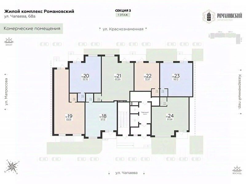 Предлагается к продаже помещение свободного назначения в Жилом Комплексе "Романовский" в самом сердце Ленинского района. Данный вариант отлично подходит для любого вида коммерческой деятельности, такого как: фитнес-студия, спортивная секция, салон красоты, пункт выдачи, магазин формата "у дома", продовольственный магазин, кофейня, и тд. В помещении есть отдельный вход и санузел. Выполнена черновая отделка, заведено электричество, подведена вода и канализация. Возможность размещения информационных вывесок на фасаде здания для привлечения внимания со стороны пешеходов. Преимущества месторасположения: • Романовский рассчитан на 700 жителей, имеется подземный и наземный паркинг на закрытой территории; • В 15 минутах ходьбы от дома расположены: стадион "Чайка", креативный кластер "Станция" и Военно-воздушная академия имени профессора Н. Е. Жуковского и Ю. А. Гагарина; • Удобные заезды на ключевые магистрали: улицы Чапаева и Краснознаменная, Казарменный переулок обеспечивают превосходную транспортную доступность; • В радиусе 750 метров расположены три остановки общественного транспорта. Более 11 маршрутов общественного транспорта позволят без суеты добраться в любую точку города; • В районе уже сформирована инфраструктура: продуктовые магазины, аптеки, кафе, поликлиники, детские центры и другие повседневные сервисы. Отличный вариант для Вашего бизнеса! Возможно, вы искали: Коммерческая недвижимость в Воронеже, Коммерческая недвижимость на правом берегу, Купить коммерческое помещение на правом берегу, Коммерческое помещение в Ленинском районе, Коммерческая недвижимость на правом берегу Воронеж, Коммерческое помещение в жилом комплексе, Коммерция Романовский, Купить коммерческую недвижимость в Воронеже, Купить коммерческую недвижимость Романовский, Нежилое помещение Романовский, Купить нежилое помещение в Романовском, Площади для инвестиций в Воронеже, Стоимость коммерции в Воронеже, Стоимость коммерции в ЖК Романовский, Коммерческая недвижимость в Воронеже на 1 этаже, Продажа нежилого помещения в Воронеже, Продажа торгового помещения в Воронеже, Офис в Воронеже, Нежилые помещения в Воронеже, Коммерция в Воронеже, Торговые площади в Воронеже, Стоимость нежилого помещения в Воронеже.