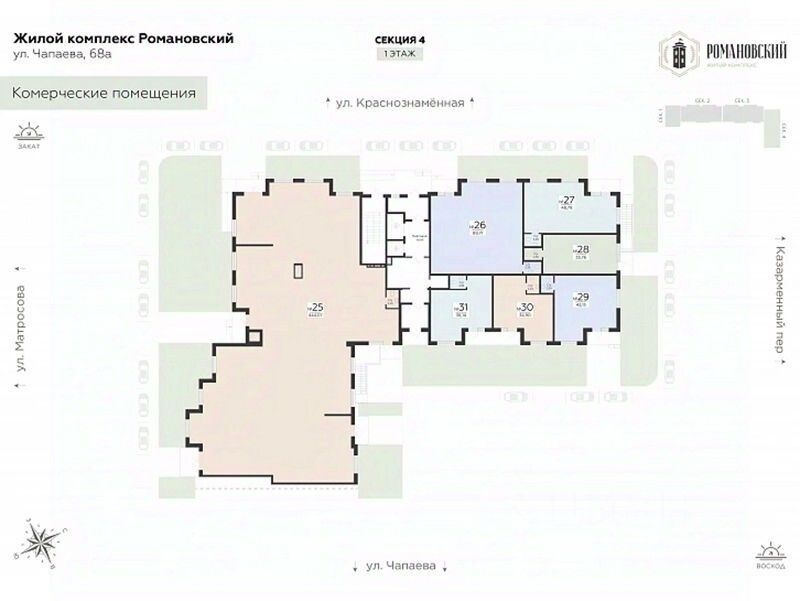 Предлагается к продаже помещение свободного назначения в Жилом Комплексе "Романовский" в самом сердце Ленинского района. Данный вариант отлично подходит для любого вида коммерческой деятельности, такого как: фитнес-студия, спортивная секция, салон красоты, пункт выдачи, магазин формата "у дома", продовольственный магазин, кофейня, и тд. В помещении есть отдельный вход и санузел. Выполнена черновая отделка, заведено электричество, подведена вода и канализация. Возможность размещения информационных вывесок на фасаде здания для привлечения внимания со стороны пешеходов. Преимущества месторасположения: • Романовский рассчитан на 700 жителей, имеется подземный и наземный паркинг на закрытой территории; • В 15 минутах ходьбы от дома расположены: стадион "Чайка", креативный кластер "Станция" и Военно-воздушная академия имени профессора Н. Е. Жуковского и Ю. А. Гагарина; • Удобные заезды на ключевые магистрали: улицы Чапаева и Краснознаменная, Казарменный переулок обеспечивают превосходную транспортную доступность; • В радиусе 750 метров расположены три остановки общественного транспорта. Более 11 маршрутов общественного транспорта позволят без суеты добраться в любую точку города; • В районе уже сформирована инфраструктура: продуктовые магазины, аптеки, кафе, поликлиники, детские центры и другие повседневные сервисы. Отличный вариант для Вашего бизнеса! Возможно, вы искали: Коммерческая недвижимость в Воронеже, Коммерческая недвижимость на правом берегу, Купить коммерческое помещение на правом берегу, Коммерческое помещение в Ленинском районе, Коммерческая недвижимость на правом берегу Воронеж, Коммерческое помещение в жилом комплексе, Коммерция Романовский, Купить коммерческую недвижимость в Воронеже, Купить коммерческую недвижимость Романовский, Нежилое помещение Романовский, Купить нежилое помещение в Романовском, Площади для инвестиций в Воронеже, Стоимость коммерции в Воронеже, Стоимость коммерции в ЖК Романовский, Коммерческая недвижимость в Воронеже на 1 этаже, Продажа нежилого помещения в Воронеже, Продажа торгового помещения в Воронеже, Офис в Воронеже, Нежилые помещения в Воронеже, Коммерция в Воронеже, Торговые площади в Воронеже, Стоимость нежилого помещения в Воронеже.