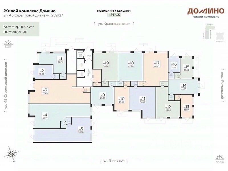 Предлагается к продаже помещение свободного назначения в Жилом Комплексе "Домино" в самом сердце Коминтерновского района. Данный вариант отлично подходит для любого вида коммерческой деятельности, такого как: фитнес-студия, спортивная секция, салон красоты, пункт выдачи, магазин формата "у дома", продовольственный магазин, кофейня, и тд. В помещении есть отдельный вход и санузел. Выполнена черновая отделка, заведено электричество, подведена вода и канализация. Возможность размещения информационных вывесок на фасаде здания для привлечения внимания со стороны пешеходов. Преимущества месторасположения: • Дом Архитектора рассчитан на 2200 жителей, имеется наземный паркинг; • В 10 минутах ходьбы от дома расположены: парк "Оазис", Педагогический колледж, школа 76 и школа 98; • Удобные заезды на ключевые магистрали: улица 45-й Стрелковой Дивизии, Жемчужная и 9 Января обеспечивают превосходную транспортную доступность; • В пяти минутах ходьбы остановка общественного транспорта. Более 6 маршрутов общественного транспорта позволят без суеты добраться в любую точку города; • В районе уже сформирована инфраструктура: торговые центры, продуктовые магазины, аптеки, кафе, поликлиники, детские центры и другие повседневные сервисы. Отличный вариант для Вашего бизнеса! Возможно, вы искали: Коммерческая недвижимость в Воронеже, Коммерческая недвижимость на правом берегу, Купить коммерческое помещение на правом берегу, Коммерческое помещение в Коминтерновском районе, Коммерческая недвижимость на правом берегу Воронеж, Коммерческое помещение в жилом комплексе, Коммерция ЖК Домино, Купить коммерческую недвижимость в Воронеже, Купить коммерческую недвижимость ЖК Домино, Нежилое помещение ЖК Домино, Купить нежилое помещение в Домино, Площади для инвестиций в Воронеже, Стоимость коммерции в Воронеже, Стоимость коммерции в Домино, Коммерческая недвижимость в Воронеже на 1 этаже, Продажа нежилого помещения в Воронеже, Продажа торгового помещения в Воронеже, Офис в Воронеже, Нежилые помещения в Воронеже, Коммерция в Воронеже, Торговые площади в Воронеже, Стоимость нежилого помещения в Воронеже.