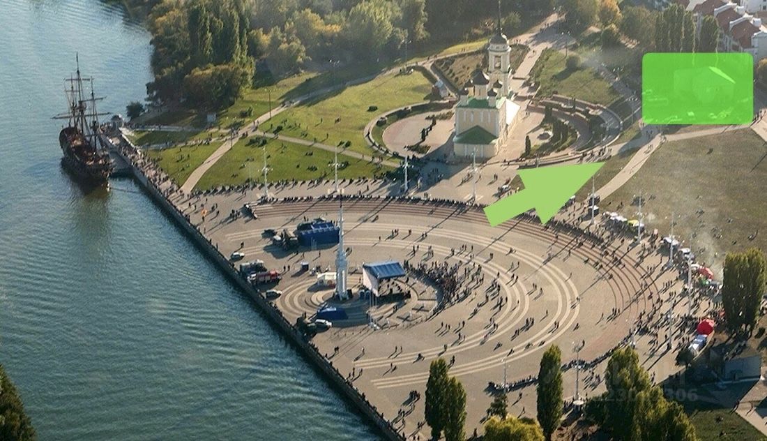 Центр Воронеж-Сити. У входа на Петровский остров.