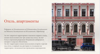 Не аварийное. Идеальное техническое состояние здания. Все коммуникации. Определены предметы охраны: красивые гипсовые и кирпичные элементы фасада. Новая кровля. Проведены все исследования и экспертизы, получены все разрешения.