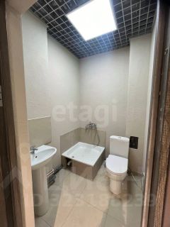 - Пространство можно зонировать на 5 рабочих мест.В помещении сделаны выводы под охранную сигнализацию, кондиционер, магнитный замок, вытяжка. В сан узле для выброса воды стоит установка Сололифт. На полу уложен керамогранит, в качестве отделки потолка использовался потолок Грильято, цв. серый металлик, ячейка 100*100, стены отделаны декоративной штукатуркой.