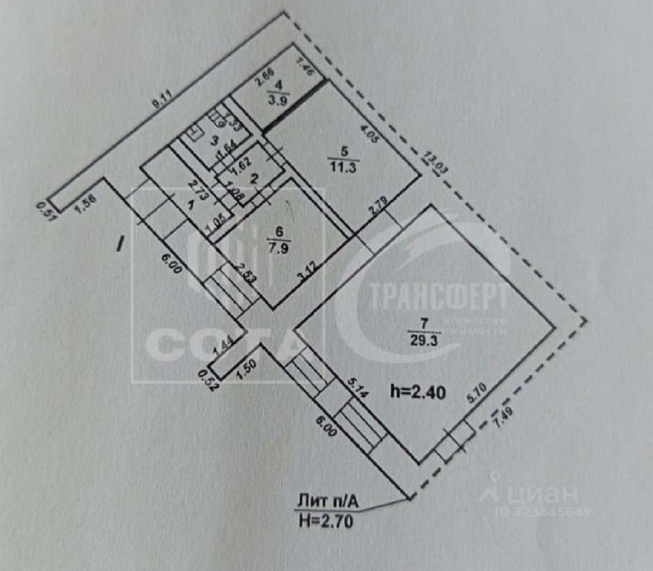 • Располагается, фактически, на первом этаже (по документам цоколь) двенадцатиэтажного дома, разделенное на два и каждое со своим входом