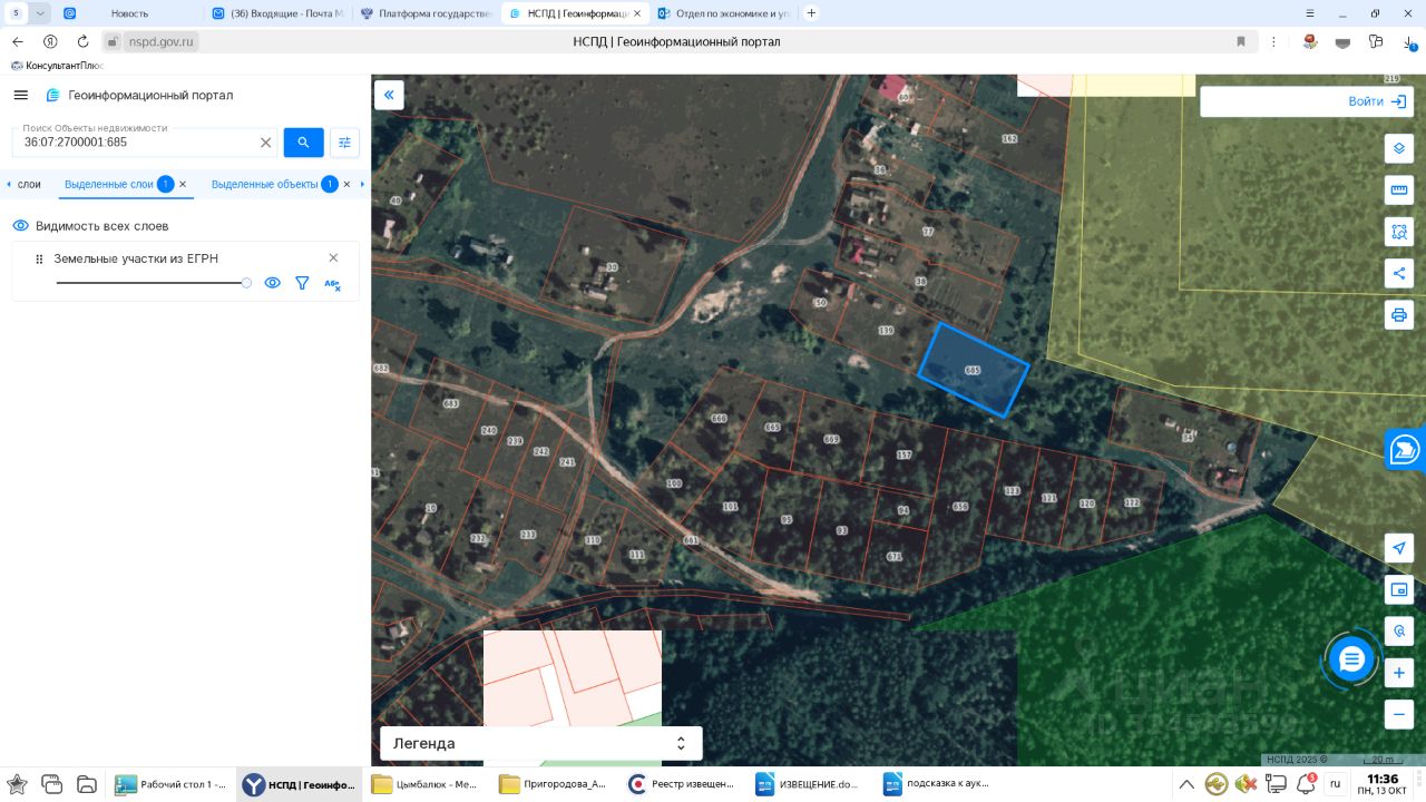 - земельный участок площадью 1571 кв.м., расположенный по адресу: Воронежская область, Верхнехавский район, Малоприваловское сельское поселение, п. Желдаевка, улица Высокая, земельный участок 2 "Б", с видом разрешенного использования: для ведения личного подсобного хозяйства. Кадастровый номер земельного участка: 36:07:2700001:685