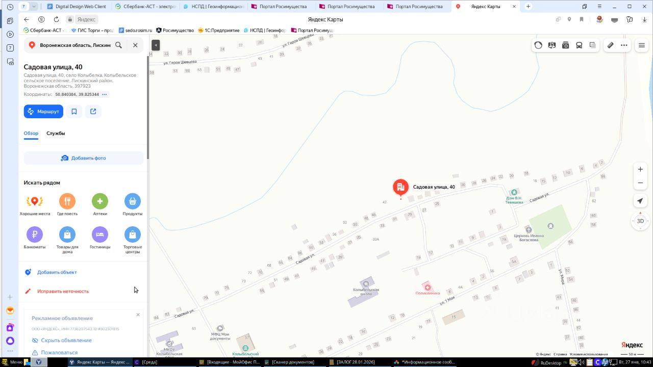 Лот 11 (повторные торги). Жилой дом площадью 77,9 кв. м, кадастровый номер 36:14:0240008:77, земельный участок площадью 2800 кв. м, кадастровый номер 36:14:0240008:33, расположенные по адресу: Воронежская область, Лискинский район, с.п. Колыбельское, с. Колыбелка, ул. Садовая, д. 40 принадлежащие Андрушко А.В.