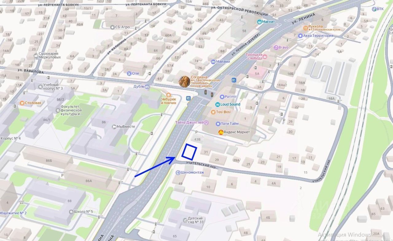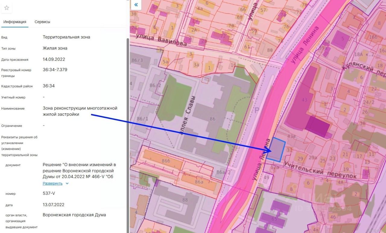 Продается земельный участок по адресу: г. Воронеж, пер. Учительский, 33 (площадь 711 кв.м, вид разрешенного использования "магазины", кадастровый номер 36:34:0605011:10). Участок свободен от строений. Получено разрешение на строительство магазина общей площадью 670 кв.м, количество этажей - 3, включая 1 подземный. Участок расположен по красной линии по ул. Ленина, имеет отличную транспортную и пешеходную доступность.