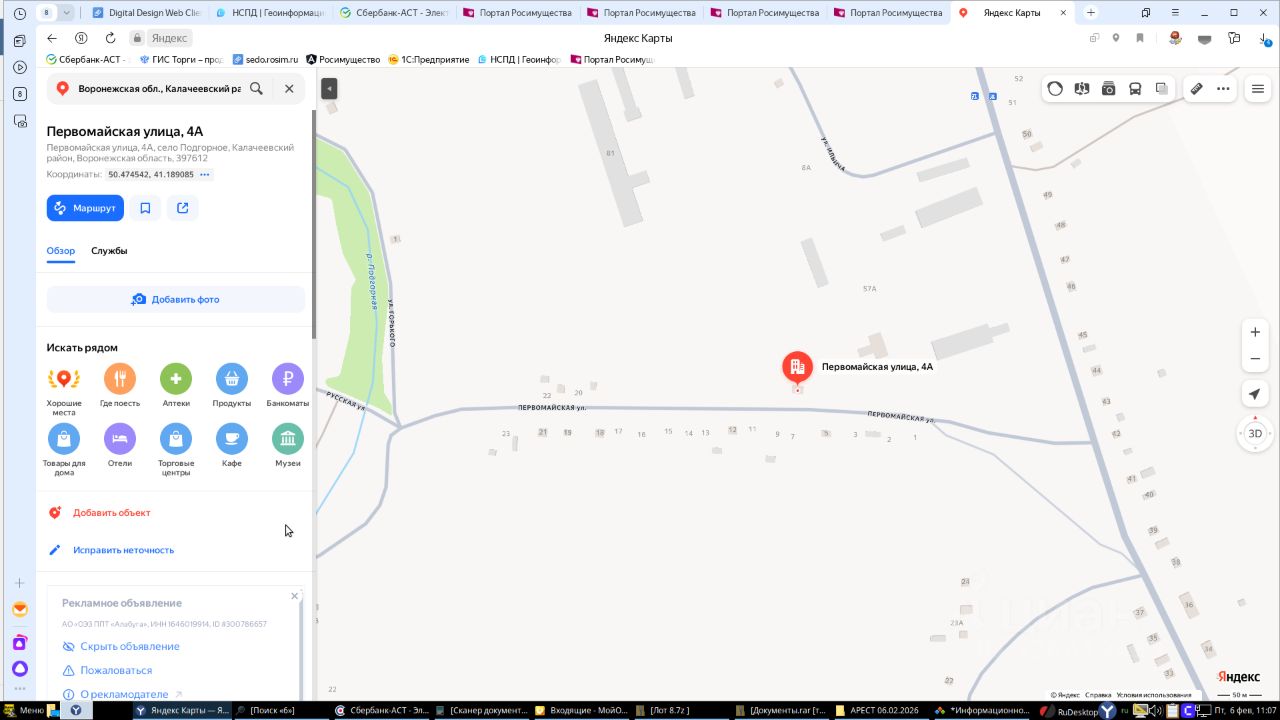 Лот 13. Здание нежилое площадью 87,8 кв. м, кадастровый номер 36:10:2600011:33, земельный участок площадью 160 кв. м, кадастровый номер 36:10:2600011:20, категория земель - земли населенных пунктов, вид разрешенного использования - для использования здания магазина, местонахождение: Воронежская обл., Калачеевский р-н, с. Подгорное, ул. Первомайская, д. 4 А. Собственник Бабарин С.С.