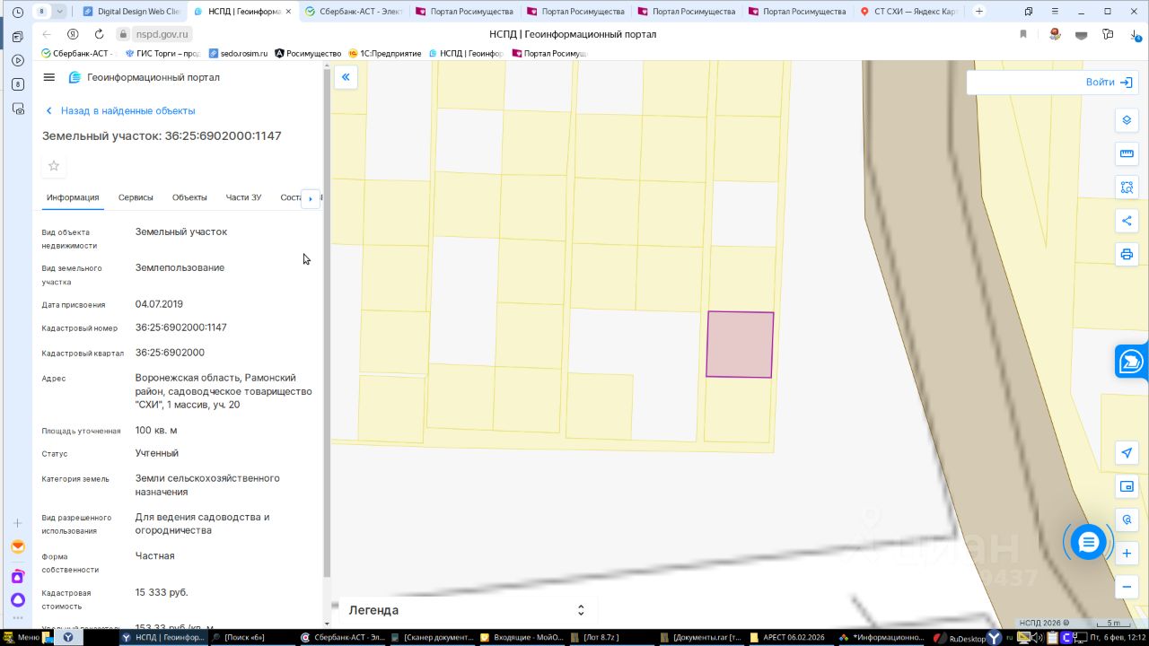 Лот 16. Земельный участок площадью 100 кв. м, кадастровый номер 36:25:6902000:1147, категория земель - земли сельскохозяйственного назначения, местонахождение, вид разрешенного использования - для ведения садоводства и огородничества, местонахождение: Воронежская обл., Рамонский р-н, СТ "СХИ", 1 массив, уч. 20. Собственник - Пыряев Д.В.