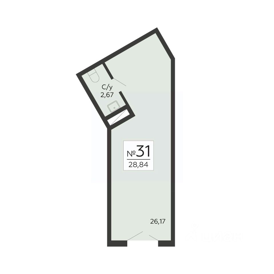 • Общая площадь28,84 м²