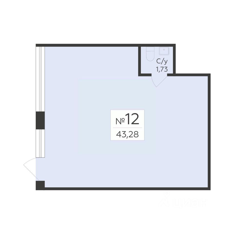 • Общая площадь43,28 м²