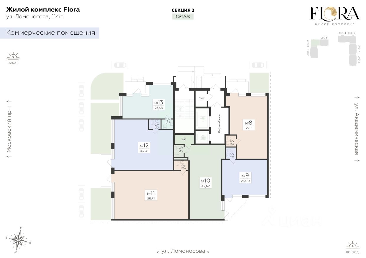 Предлагается к продаже помещение свободного назначения в жилом комплексе "Flora" в одном из самых привлекательных районов города. Данный вариант отлично подходит для любого вида коммерческой деятельности, такого как: фитнес-студия, спортивная секция, салон красоты, пункт выдачи, магазин формата "у дома", продовольственный магазин, кофейня, и тд. В помещении есть отдельный вход и санузел. Выполнена черновая отделка, заведено электричество, подведена вода и канализация. Возможность размещения информационных вывесок на фасаде здания для привлечения внимания со стороны пешеходов. Преимущества месторасположения: • Жилой комплексе "Flora" рассчитан на 1200 жителей, имеется наземный паркинг на закрытой территории; • В 10 минутах ходьбы от дома расположены: школа Содружество, парк "Дендрарий", областная детская больница 1, Воронежский государственный аграрный университет и Воронежский государственный лесотехнический университет им. Г. Ф. Морозова; • Удобные заезды на ключевые магистрали: Московский проспект и улица Ломоносова обеспечивают превосходную транспортную доступность; • В семи минутах ходьбы остановка общественного транспорта. Более 8 маршрутов общественного транспорта позволят без суеты добраться в любую точку города; • В районе уже сформирована инфраструктура: продуктовые магазины, аптеки, кафе, поликлиники, детские центры и другие повседневные сервисы. Отличный вариант для Вашего бизнеса! Возможно, вы искали: Коммерческая недвижимость в Воронеже, Коммерческая недвижимость на правом берегу, Купить коммерческое помещение на правом берегу, Коммерческое помещение в Центральном районе, Коммерческая недвижимость на правом берегу Воронеж, Коммерческое помещение в жилом комплексе, Коммерция Флора, Купить коммерческую недвижимость в Воронеже, Купить коммерческую недвижимость Флора, Нежилое помещение Флора, Купить нежилое помещение в ЖК Флора, Площади для инвестиций в Воронеже, Стоимость коммерции в Воронеже, Стоимость коммерции в ЖК Флора, Коммерческая недвижимость в Воронеже на 1 этаже, Продажа нежилого помещения в Воронеже, Продажа торгового помещения в Воронеже, Офис в Воронеже, Нежилые помещения в Воронеже, Коммерция в Воронеже, Торговые площади в Воронеже, Стоимость нежилого помещения в Воронеже.