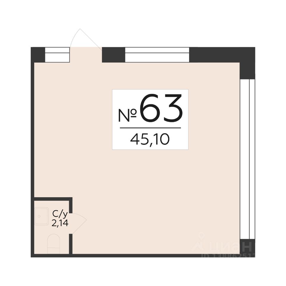 Помещение свободного назначения, 45,1 м²