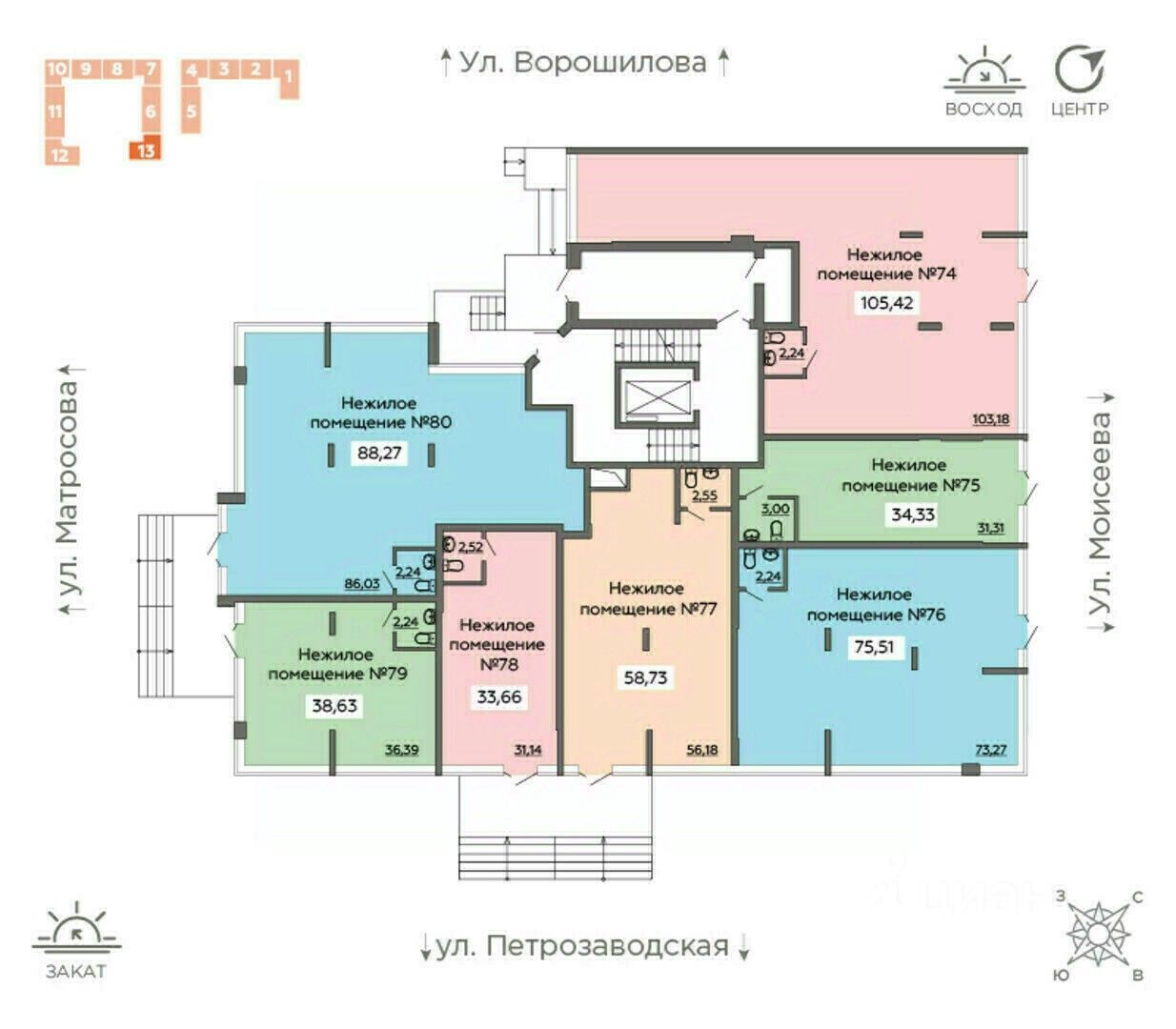 Коммерческое помещение свободного назначения в Жилом Комплексе "Суворов Сити" в Ленинском районе города Воронежа на улице 121 Стрелковой Дивизии.