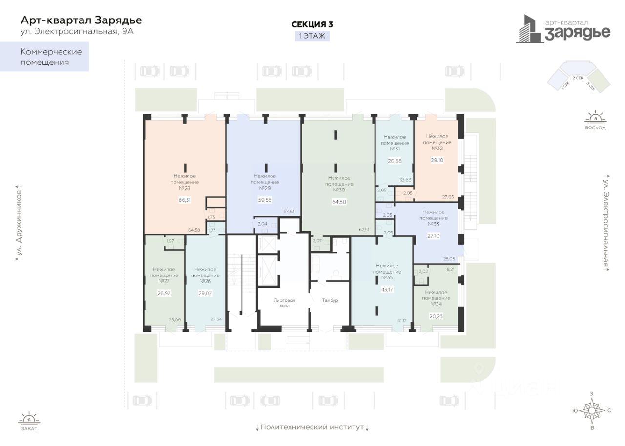 Предлагается к продаже помещение свободного назначения в Жилом Комплексе "Зарядье" в хорошо развитом районе вокруг Арт-квартала. Данный вариант отлично подходит под любой вид коммерческой деятельности таких как: фитнес-студия, спортивные секции, салоны красоты, пункты выдачи, магазины формата "у дома", продовольственные магазины, кофейни и тд. В помещении есть отдельный вход и санузел. Выполнена черновая отделка, заведено электричество, подведена вода и канализация. Возможность размещения информационных вывесок на фасаде здания для привлечения внимания со стороны пешеходов. Преимущества месторасположения: • ЖК Зарядье рассчитан на 2000 жителей; • Архитектура Арт-квартала "Зарядье" состоит из трех зданий переменной этажности соединенным единым двором-парком, и оснащённый просторным подземным паркингом; • Здесь много школ и детских садов, высших учебных заведений, работают поликлиники, спортивные секции и прочее. Рядом — магазины и торговые центры; • В планах города Воронежа создать дорогу-дублер Московского проспекта, которая будет проходить по улице Солнечной; • В коммерческом помещении спроектирован отдельный вход, высокие потолки, панорамные окна на улицу. Отличный вариант для Вашего бизнеса! Возможно, вы искали: Коммерческая недвижимость в Воронеже, Коммерческая недвижимость в центре Воронежа, Коммерческое помещение в жилом комплексе, Коммерция ЖК Зарядье, Купить коммерческую недвижимость в Воронеже, Купить коммерческую недвижимость ЖК Зарядье, Нежилое помещение ЖК Зарядье, Купить нежилое помещение ЖК Зарядье, Площади для инвестиций в Воронеже, Стоимость коммерции в Воронеже, Стоимость коммерции в ЖК Зарядье, Коммерческая недвижимость в Воронеже на 1 этаже, Продажа нежилого помещения в Воронеже, Продажа торгового помещения в Воронеже, Офис в Воронеже, Нежилые помещения в Воронеже, Коммерция в Воронеже, Торговые площади в Воронеже, Стоимость нежилого помещения в Воронеже.