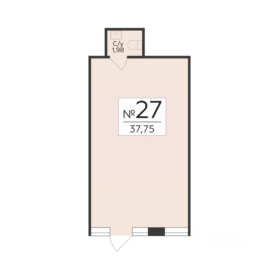 • Общая площадь37,75 м²