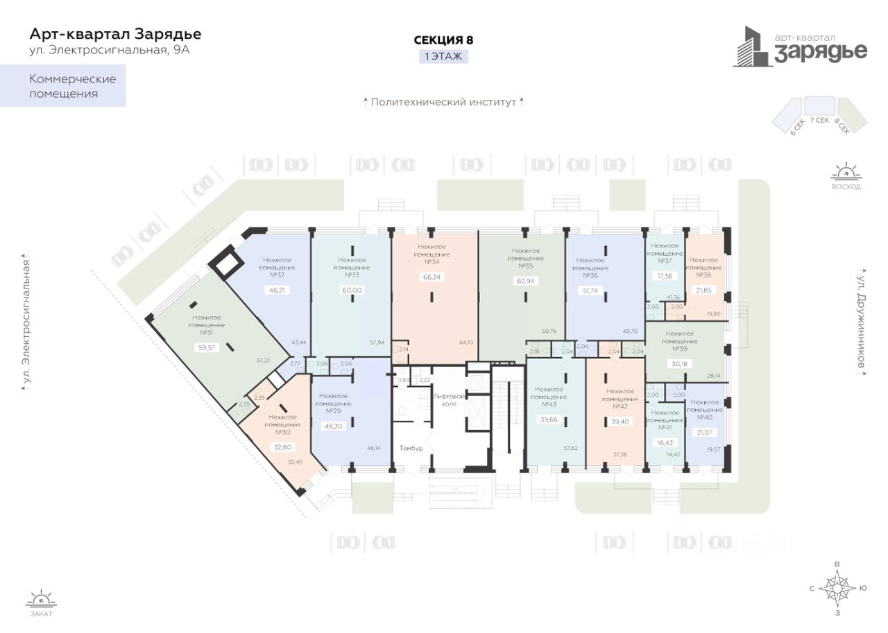 Предлагается к продаже помещение свободного назначения в Жилом Комплексе "Зарядье" в хорошо развитом районе вокруг Арт-квартала. Данный вариант отлично подходит под любой вид коммерческой деятельности таких как: фитнес-студия, спортивные секции, салоны красоты, пункты выдачи, магазины формата "у дома", продовольственные магазины, кофейни и тд. В помещении есть отдельный вход и санузел. Выполнена черновая отделка, заведено электричество, подведена вода и канализация. Возможность размещения информационных вывесок на фасаде здания для привлечения внимания со стороны пешеходов. Преимущества месторасположения: • ЖК Зарядье рассчитан на 2000 жителей; • Архитектура Арт-квартала "Зарядье" состоит из трех зданий переменной этажности соединенным единым двором-парком, и оснащённый просторным подземным паркингом; • Здесь много школ и детских садов, высших учебных заведений, работают поликлиники, спортивные секции и прочее. Рядом — магазины и торговые центры; • В планах города Воронежа создать дорогу-дублер Московского проспекта, которая будет проходить по улице Солнечной; • В коммерческом помещении спроектирован отдельный вход, высокие потолки, панорамные окна на улицу. Отличный вариант для Вашего бизнеса! Возможно, вы искали: Коммерческая недвижимость в Воронеже, Коммерческая недвижимость в центре Воронежа, Коммерческое помещение в жилом комплексе, Коммерция ЖК Зарядье, Купить коммерческую недвижимость в Воронеже, Купить коммерческую недвижимость ЖК Зарядье, Нежилое помещение ЖК Зарядье, Купить нежилое помещение ЖК Зарядье, Площади для инвестиций в Воронеже, Стоимость коммерции в Воронеже, Стоимость коммерции в ЖК Зарядье, Коммерческая недвижимость в Воронеже на 1 этаже, Продажа нежилого помещения в Воронеже, Продажа торгового помещения в Воронеже, Офис в Воронеже, Нежилые помещения в Воронеже, Коммерция в Воронеже, Торговые площади в Воронеже, Стоимость нежилого помещения в Воронеже.