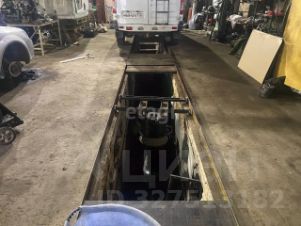 С одной стороны здания находятся два ремонтных бокса с ямами, кран-балкой. Двое ворот размером 4х4 метра, подсобные помещения, площадь 194м2.