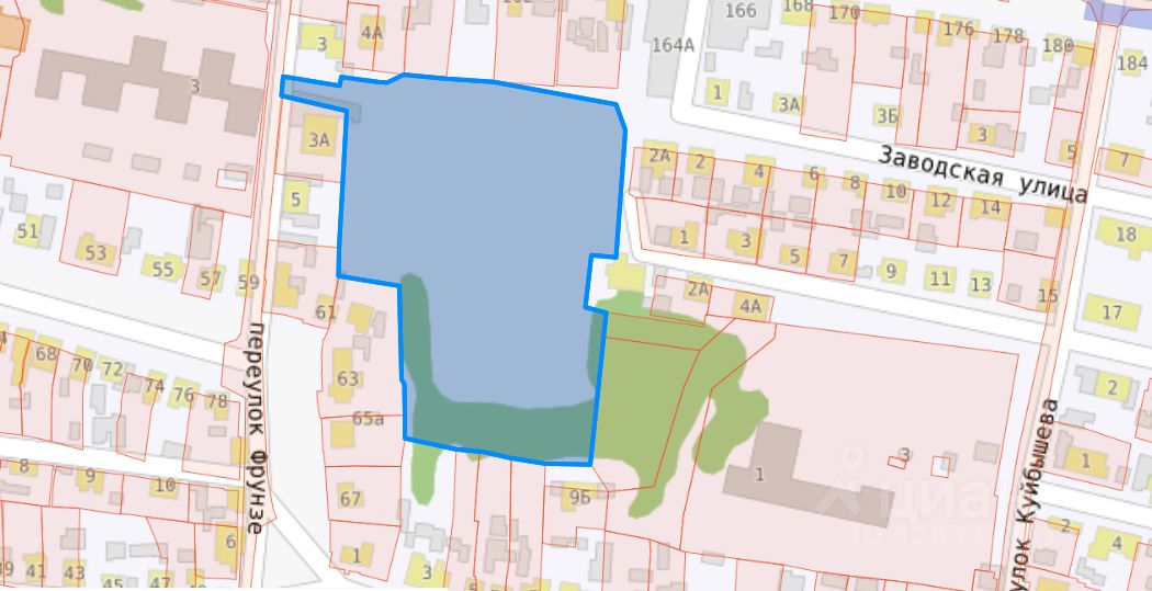 Земельный участок с кадастровым номером 36:04:0103039:395 площадь 14853 по адресу Воронежская область, г. Борисоглебск, пер. Фрунзе, 3 Б