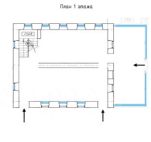 3 входа, 185 м2, 10 высоких окон + витринные окна в пол (требуется установка). Возможно расширение площади.