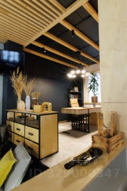 Зона ресепшн: ресепшн из дерева и металлоконструкций, скрытая тумба для хранения, кладовая для инвентаря.