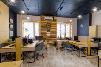 Основное рабочее пространство: 10 готовых рабочих мест (возможно перепланировать), дополнительные тумбы для хранения документов и оргтехники, минираздевалка для персонала.