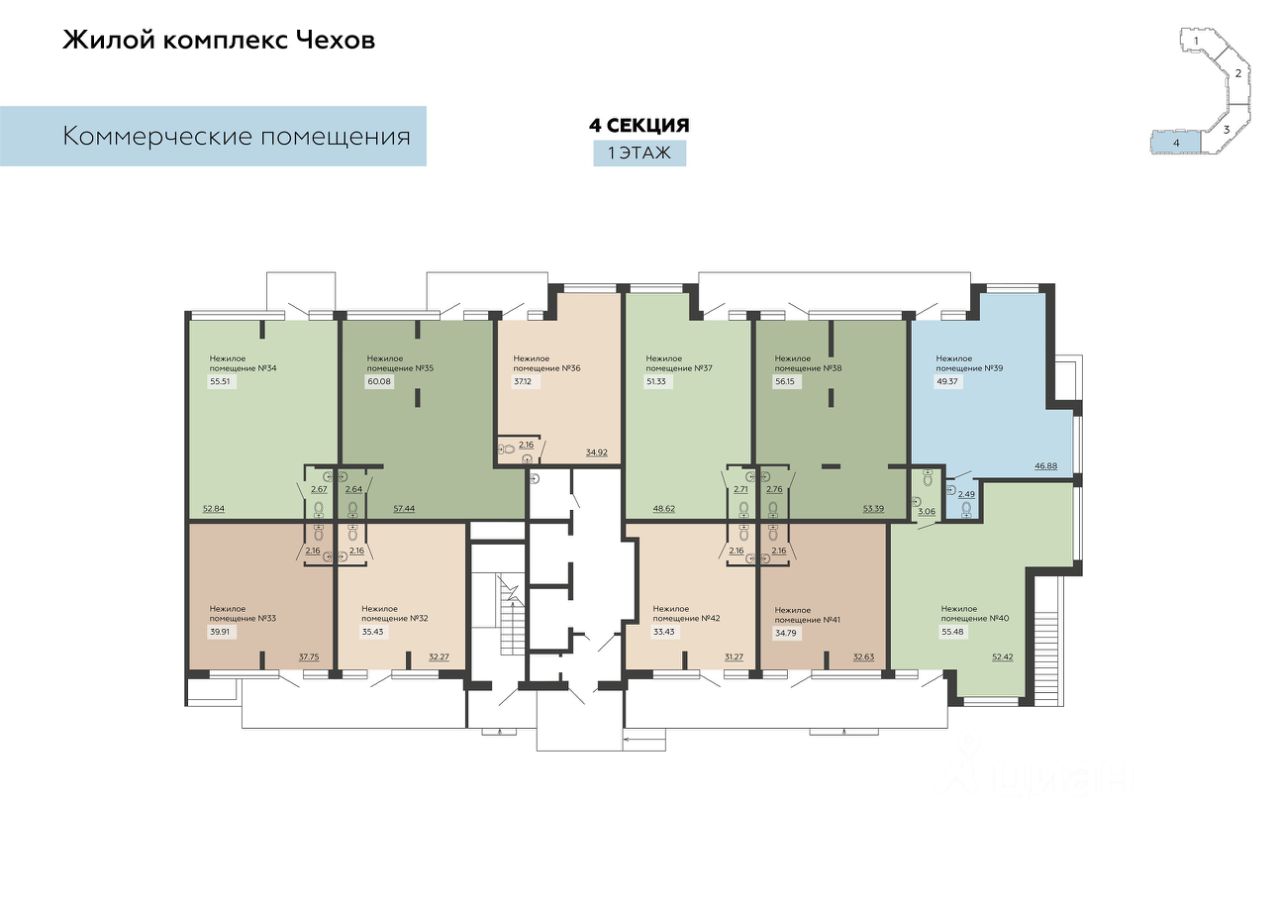 Помещение свободного назначения, 51,33 м²