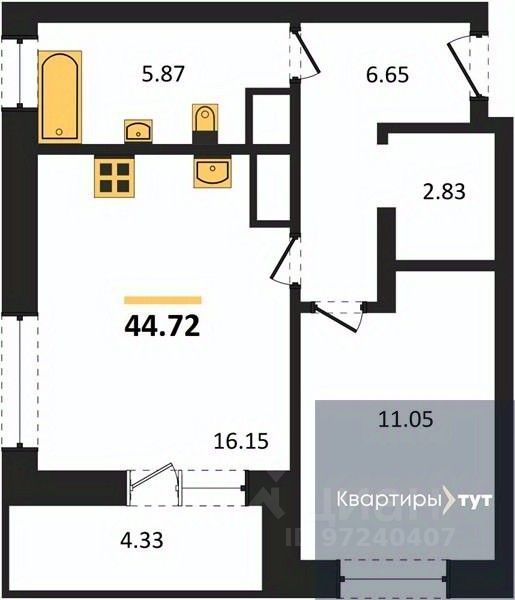 Квартира: 1 к 44,72 кв.м., 22 этаж в комплексе Галилей, 1 очередь, корп.3, сдача: 3кв. , этажей: 25, адрес Воронеж г., Кривошеина ул., д. 13/14, Застройщик: ГК Крайс.