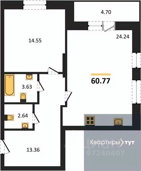 Квартира: 1 к 60,77 кв.м., 3 этаж в комплексе Галилей, 1 очередь, корп.1, сдача: 3кв. , этажей: 25, адрес Воронеж г., Кривошеина ул., д. 13/14, Застройщик: ГК Крайс.