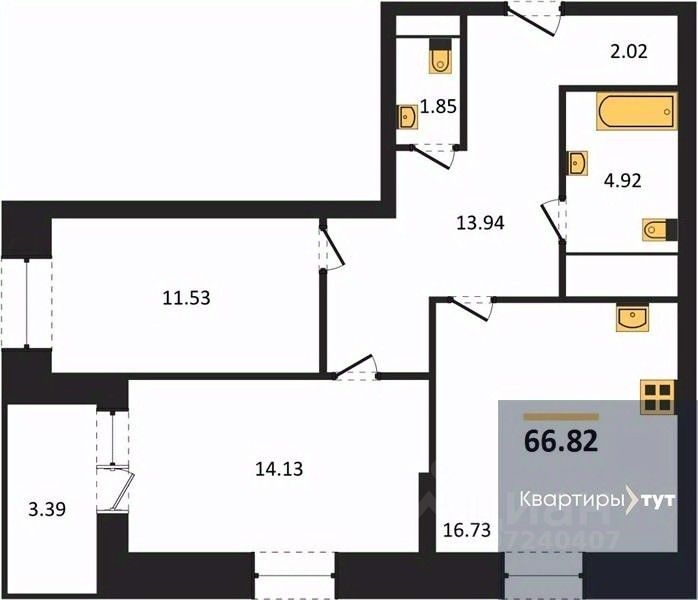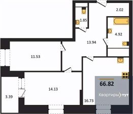 Квартира: 2 к 67,77 кв.м., 4 этаж в комплексе Галилей, 1 очередь, корп.2, сдача: 3кв. , этажей: 25, адрес Воронеж г., Кривошеина ул., д. 13/14, Застройщик: ГК Крайс.