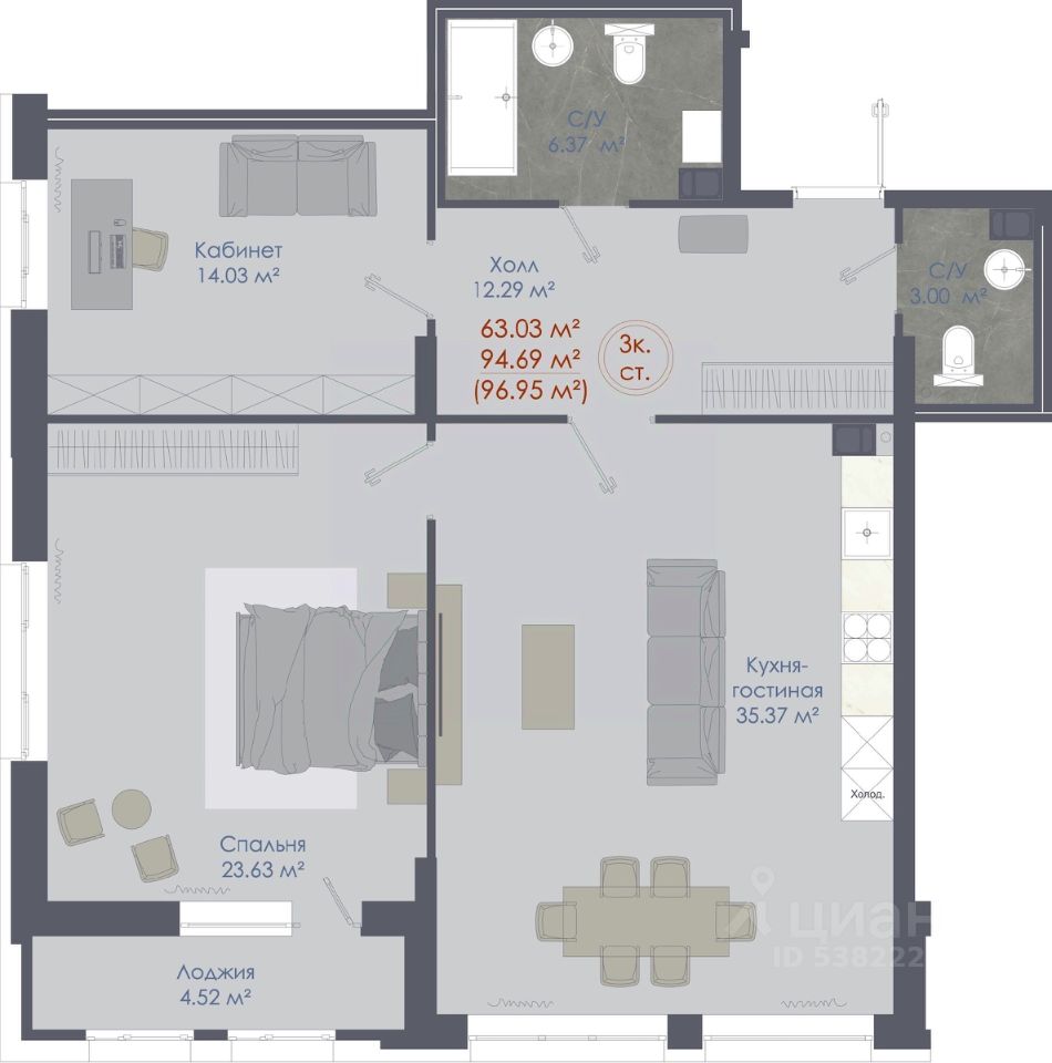Продаётся 3-комнатная квартира в сданном доме (Любы Шевцовой, 31), срок сдачи: IV-кв. 2024, общей площадью 96.95 кв.м., на 6 этаже. Новый жилой комплекс "А-Центр" от группы компаний "Семья" расположен по адресу: г. Воронеж, по ул. Генерала Перхоровича.